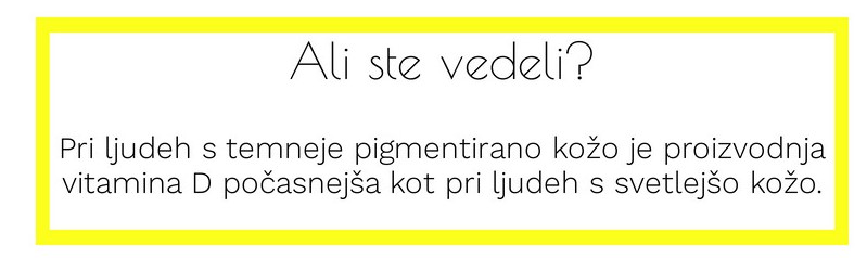 Si tratta infatti di un ormone che ha senso da inserire nel “menù del giorno” dell’intero periodo autunno-inverno. Nonostante tutti gli sforzi che fai per mangiare una varietà di cibi, è stato dimostrato che la vitamina D è carente nella stragrande maggioranza degli sloveni. Secondo alcune ricerche, ben l’80% della popolazione adulta in Slovenia ha una carenza di vitamina D.